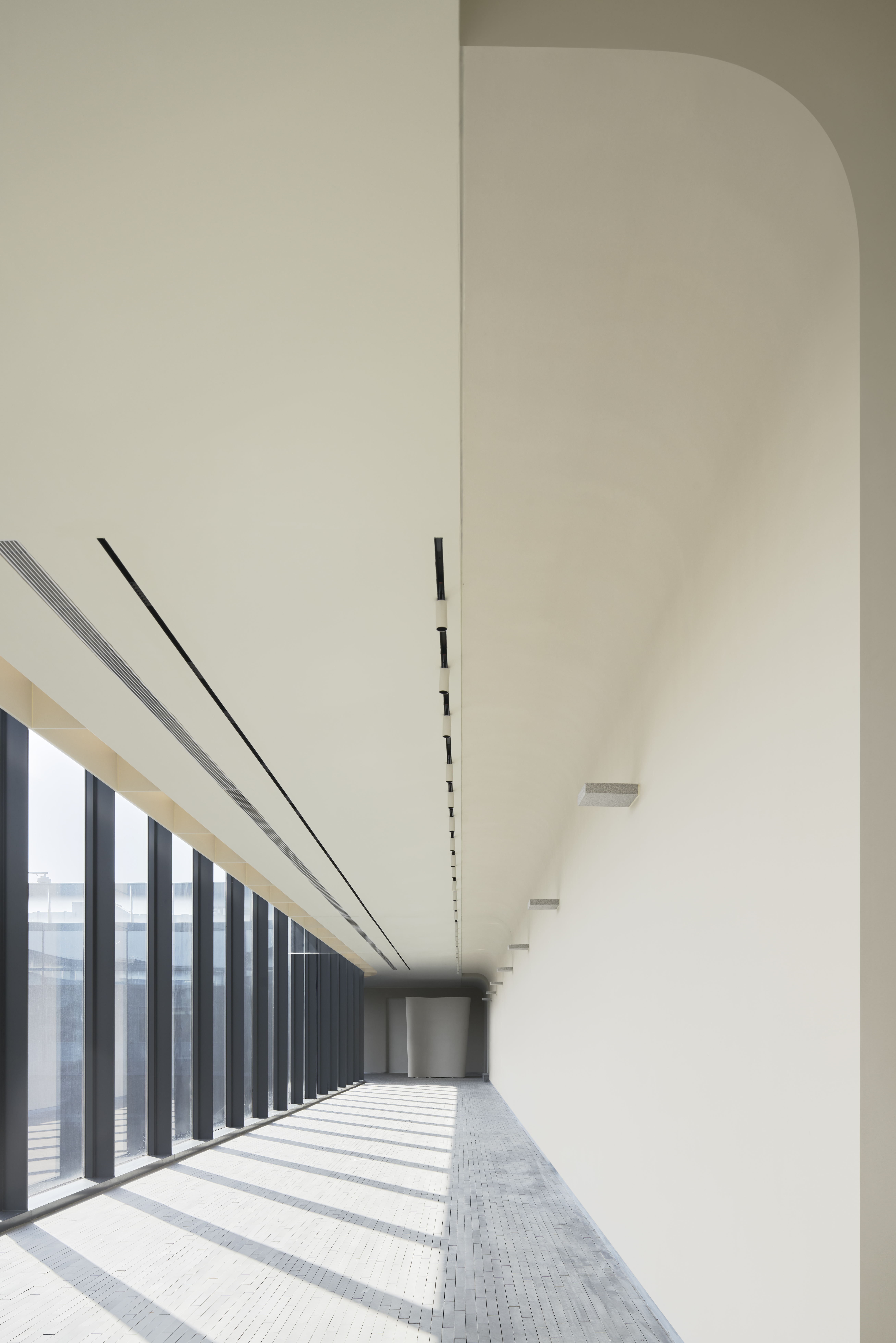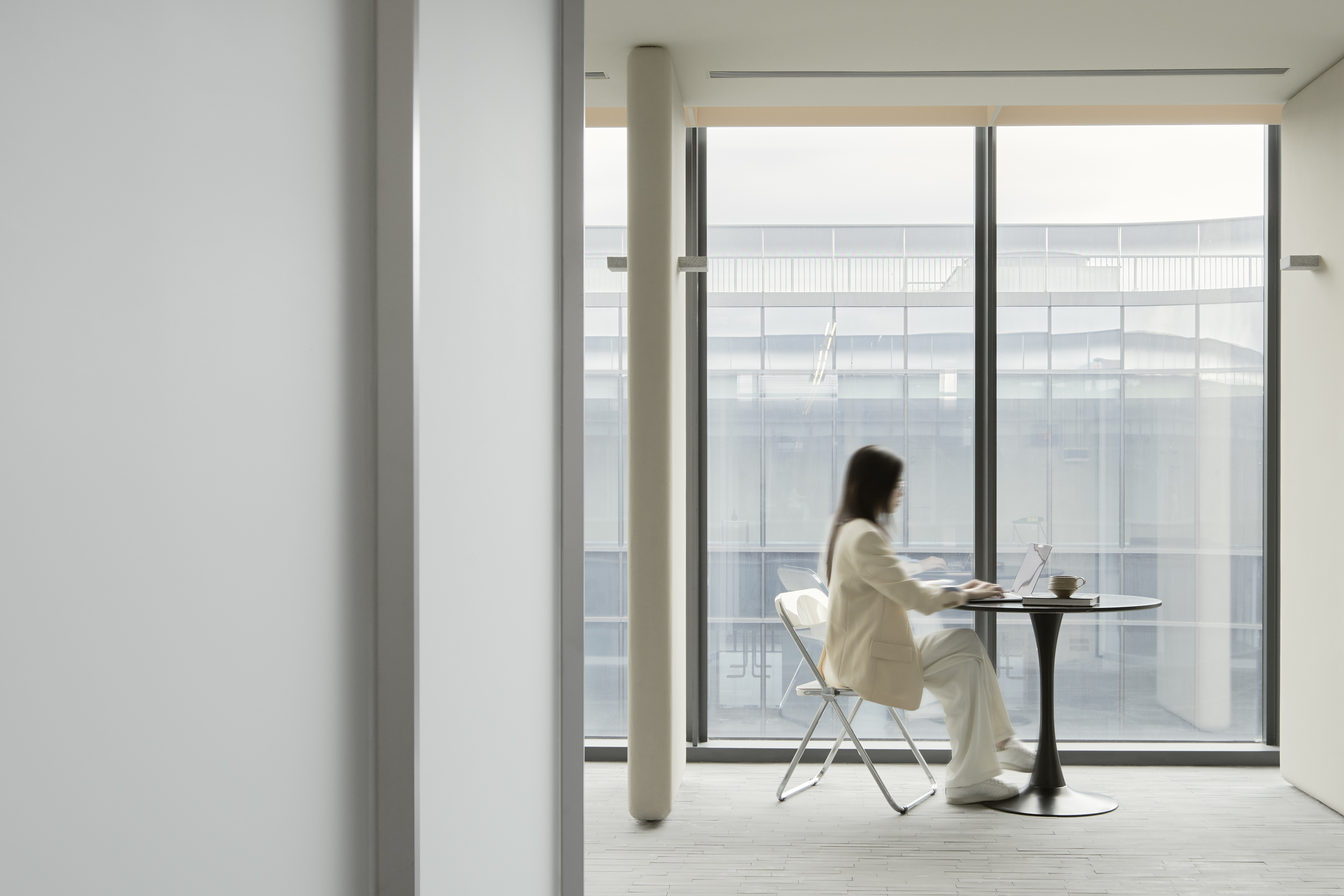 FRRE WORK: A clockwise circular flow at the centre of the site, carrying different auxiliary spaces in line with the needs of the different departments, which contains multifunctional spaces for receptions, short meetings, discussions, curatorial and dining, and is the heart of the whole space.